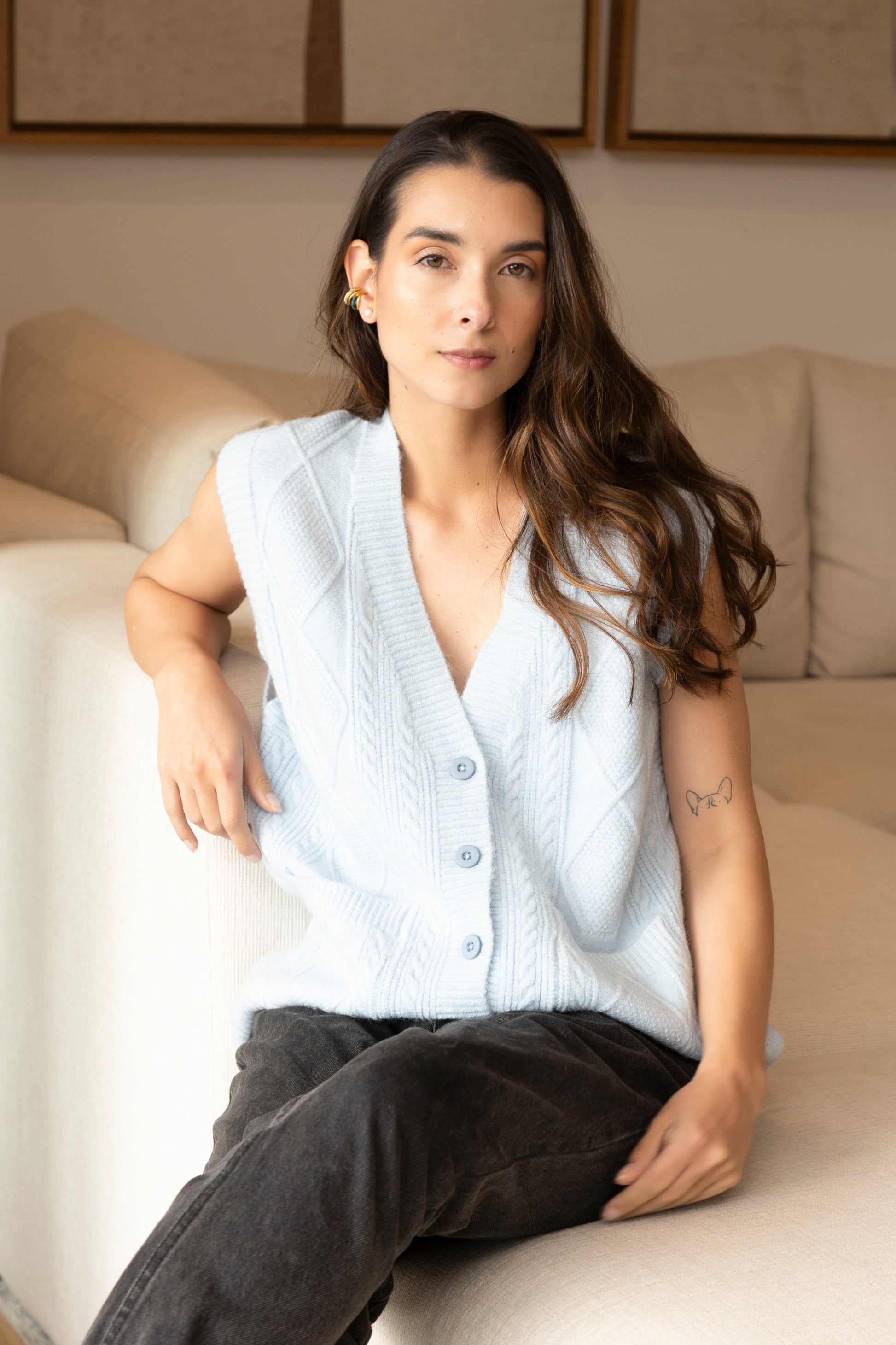 El chaleco esencial que eleva cualquier look. El Aura Vest es ligero, moderno y perfecto para usar sobre camisetas, tops o camisas. Su simplicidad refinada permite jugar con capas y texturas mientras mantiene un estilo limpio y atemporal.